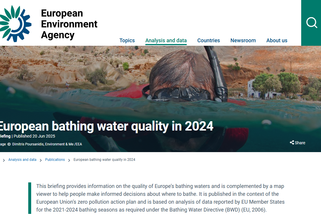 Najnovije izvješće Europske agencije za okoliš pod nazivom Kakvoća voda za kupanje u Europi...