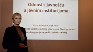 Cilj predavanja bio je predstaviti studentima rad Agencije i Odjela za odnose s javnošću te očuvanje okoliša i prirode, s aspekta komunikacije s javnostima javne institucije. Gošća predavačica na kolegiju Odnosi s javnošću u javnim institucijama studentima druge godine diplomskog studija Upravljanje odnosima s javnošću predstavila je aktivnosti usmjerene prema javnostima HAOP-a: edukativne radionice i organizirane događaje, sudjelovanja na stručnim skupovima, različite projekte i tiskana izdanja s ciljem uključivanja. Dodatno, istaknula je i izazove s kojima se susreće u radu u Agenciji. „Okolišni izazovi su sami po sebi složeni pa je takva i komunikacija o njima. Jezik je često tehnički i nerazumljiv široj javnosti. Prisutan je i izvjestan pritisak na komunikaciju, s obzirom da ona treba dodatno unaprijediti mjere okolišnih politika i njihovu implementaciju. U tom kontekstu, posebice je osjetljiv proces komunikacije koji ima za cilj promjenu određenog ponašanja kod građana.“, rekla je Branka Ilakovac, dipl. nov.
