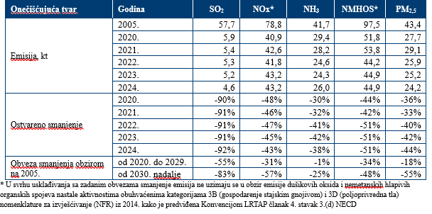 Emisije, postignuto smanjenje i obveze smanjenja sukladno NEC direktivi.