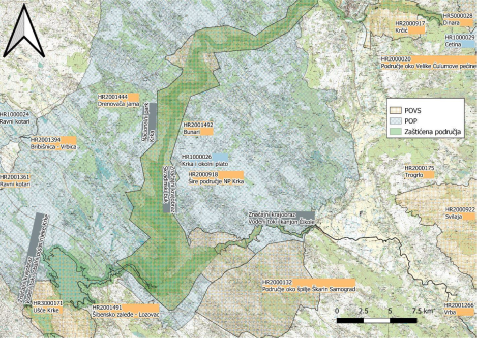 Projekt se provodi unutar četiri područja ekološke mreže Natura 2000: Šireg područja NP „Krka“ (HR2000918), Čikole (HR2000919), Vrbe (HR2001266) i Srednjeg toka Cetine s Hrvatačkim i Sinjskim poljem (HR2001313).