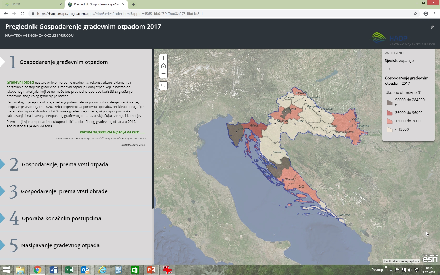 Na mrežnim stranicama Hrvatske agencije za okoliš i prirodu objavljen je GIS Preglednik „Gospodarenje građevnim otpadom u 2017. godini“.